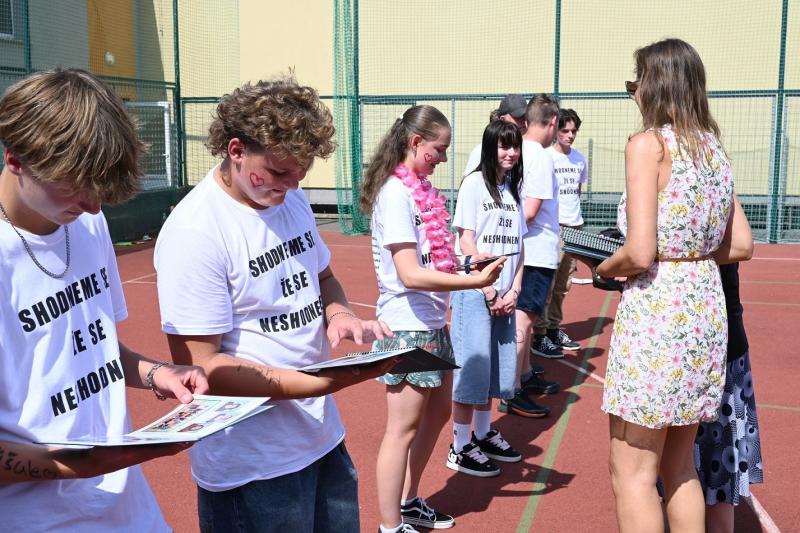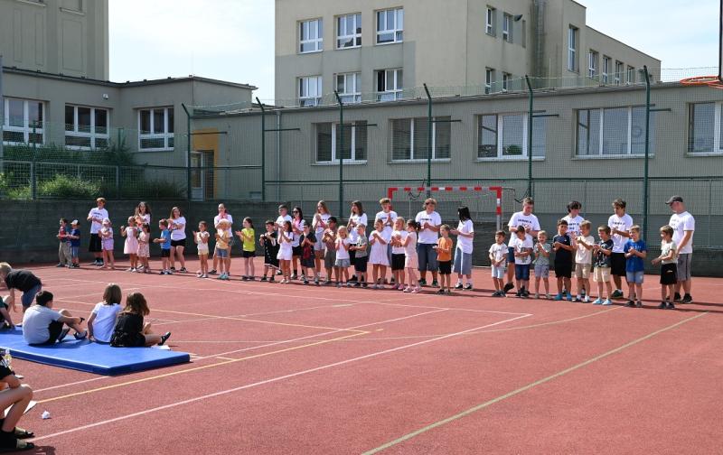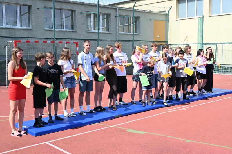 Poslední společná akce školy proběhla ve čtvrtek 26. 6. Všichni žáci a učitelé se sešli na školním hřišti, kde proběhlo vyhlášení nejlepších sportovců za školní rok 2024/2025 a rozloučení deváťáků se školou.