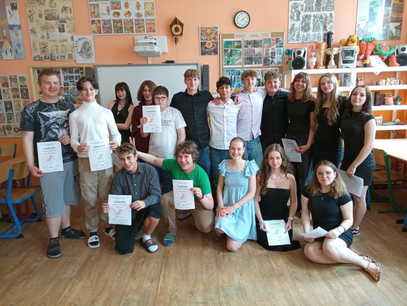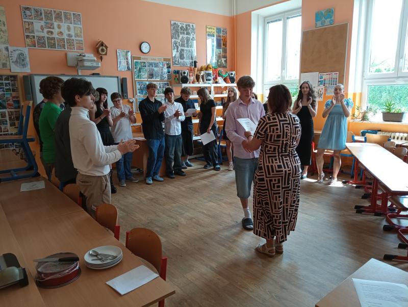 Toto deváťáci dokázali a za odměnu je čekala slavnostně prostřená tabule ve školní jídelně, kde si všichni dali v klidu řízek s pečenými brambory a zmrzlinu jako sladkou tečku. Nakonec si všichni převzali zasloužená ocenění a oddychli si, že překonali sami sebe a že to zvládli. Za to všem jménem celého učitelského sboru gratuluji.