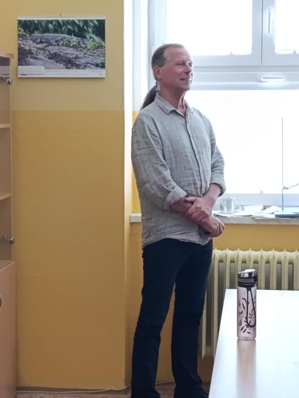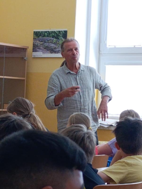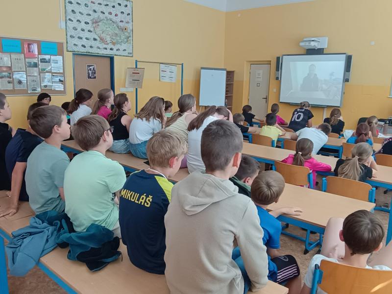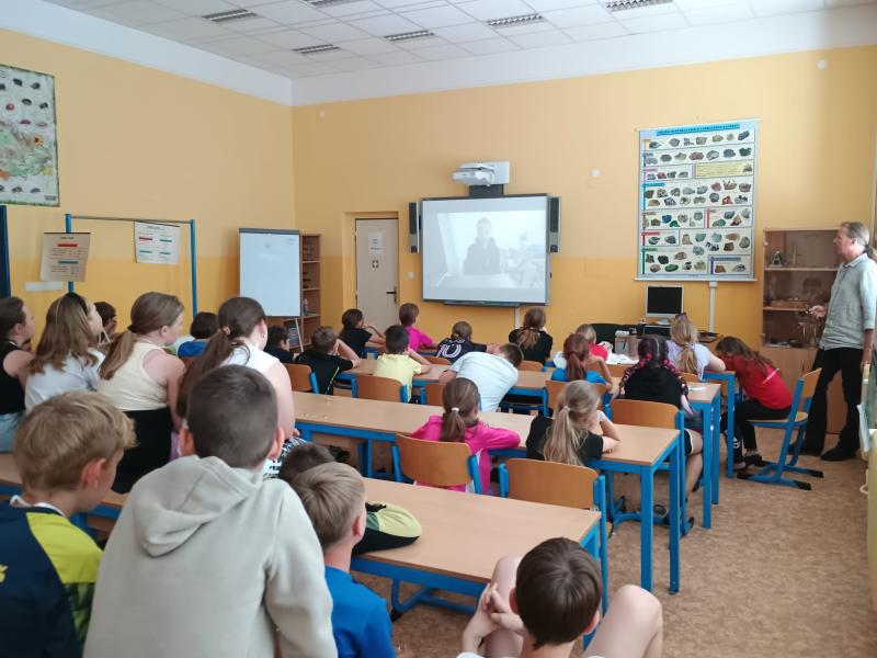 17. června 2025 se žáci čtvrtého a pátého ročníku zúčastnili besedy s cestovatelem panem Petrem Nazarovem. Ten navštívil naši školu již vícekrát. Tentokrát si připravil program Toulky kolem České republiky. Zajímavou formou seznamoval děti s průběhem své cesty při našich hranicích. Takto obešel celou republiku. V průběhu besedy nám své zážitky přiblížil formou poutavého vyprávění, které bylo samozřejmě doplněno mnoha fotografiemi a ukázkami. Zaujalo nás také to, že o svém putování napsal knihu. Povídání o Česku se nám líbilo a budeme se těšit na další podobné besedy.