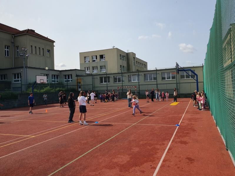 V pondělí 9. června jsme se poprvé setkali na hřišti u školy s budoucími prvňáky, o které se budeme v příštím roce starat v rámci projektu „Kamarád“. Seznámili jsme se a potom jsme pro ně připravili tři sportovní stanoviště (běh, skok a hod míčkem). Všechno bylo moc fajn a všichni si to užili. Nejlepší sportovci dostali medaili a ocenění. Všichni pak dostali navíc bonbón za odměnu. Už se těšíme na další společné akce.