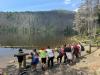 Po zaslouženém odpočinku a vydatné svačině na rozhledně jsme se vydali k Čertovu jezeru. Pohodová stezka lesem nás vedla nádhernou přírodou, a když jsme stanuli na břehu jezera, uchvátil nás jeho klid a tajemná atmosféra. Bylo příjemné posedět u vody, popovídat si s kamarády a užít si tento kouzelný kout Šumavy. Samozřejmě ani tady svačina nechyběla. 😊