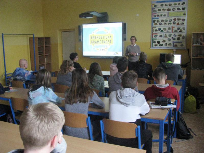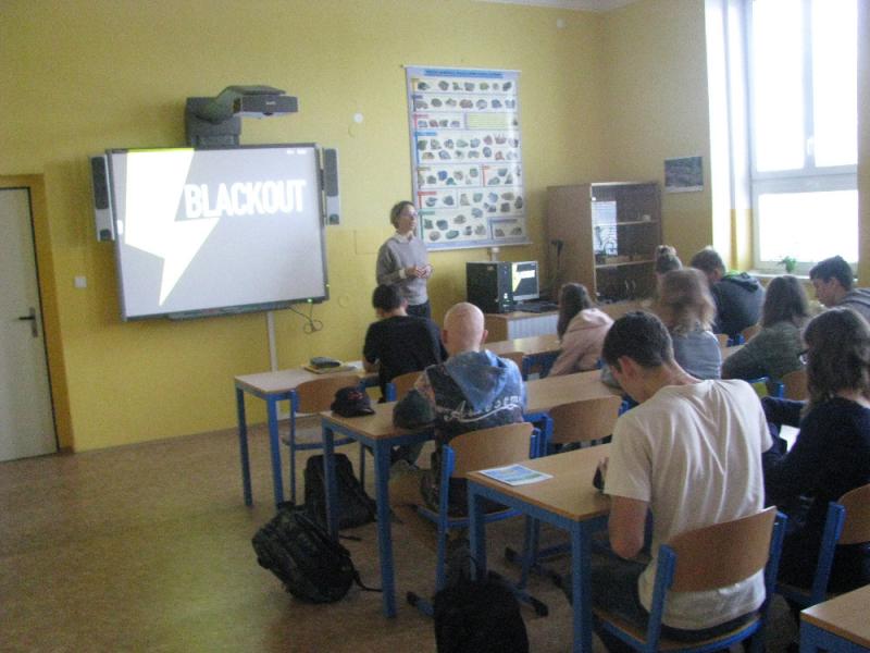 Ve čtvrtek 9. 11. 2017 k nám do školy přišla Adéla Holasová z FEL ČVUT v Praze přednášet v rámci projektu Energetická gramotnost, aneb bez elektřiny to nejde: BLACKOUT. Přednáška pro žáky 9. třídy byla rozšiřujícím učivem v oblasti energetiky. Dozvěděli se, co je to BLACKOUT, REGULACE, KVALITNÍ ENERGETICKÝ MIX.