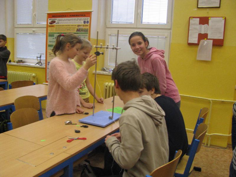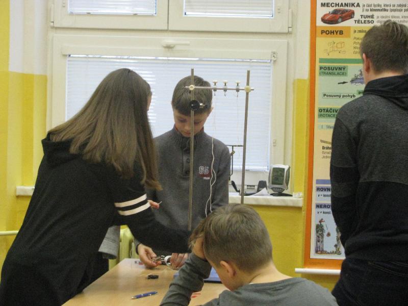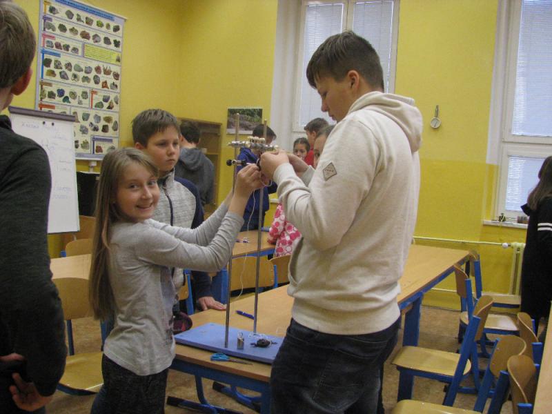 Ve čtvrtek 21. 12. 2017 se konala tradiční vánoční (vědomostní) soutěž pro vybrané žáky z 5. až 9. třídy. Žáci byli přerozděleni do pěti družstev a společnými silami zdolávali problémové úlohy, které byly sestaveny z anglického a českého jazyka, sportu, přírodopisu, fyziky a chemie. Samotnou soutěž jsme započali poznáváním českých listnatých stromů. Dále jsme plnili úkoly z fyziky, které se skládaly z teoretické a praktické části. V teoretické části přiřazovaly děti známé vynálezce ke svým vynálezům. V praktické části žáci sestavovali Archimédův kladkostroj podle obrázku a podle modelu sestaveného na ukázku. Všechna družstva se popasovala s počáteční nejistotou v praktické části bravurně. Dále jsme řešili otázky z českého a anglického jazyka a sportu. Otázky z českého jazyka byly zaměřeny na českou klasiku, v anglickém jazyce měli žáci za úkol vymýšlet rýmovaná slova a ve sportu byli dotazováni na sportovní předměty. Na závěr vědomostní soutěže jsme si nechali praktickou úlohu z chemie. Všichni dostali do skupiny „Vánoční koktejl“, který se skládal z vody, soli, barviva, oleje, a chemické nádobí. Jejich úkolem bylo jednotlivé složky směsi od sebe oddělit.
