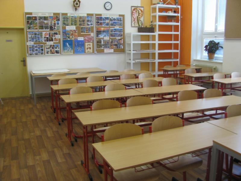 Učebna výtvarné výchovy byla zrenovována nejvíce - nová malba, nová podlaha a nový nábytek: nastavitelné lavice, pracovní stoly, police, korkové nástěnky, magnetické tabule na trojnožce a lis na grafiku.