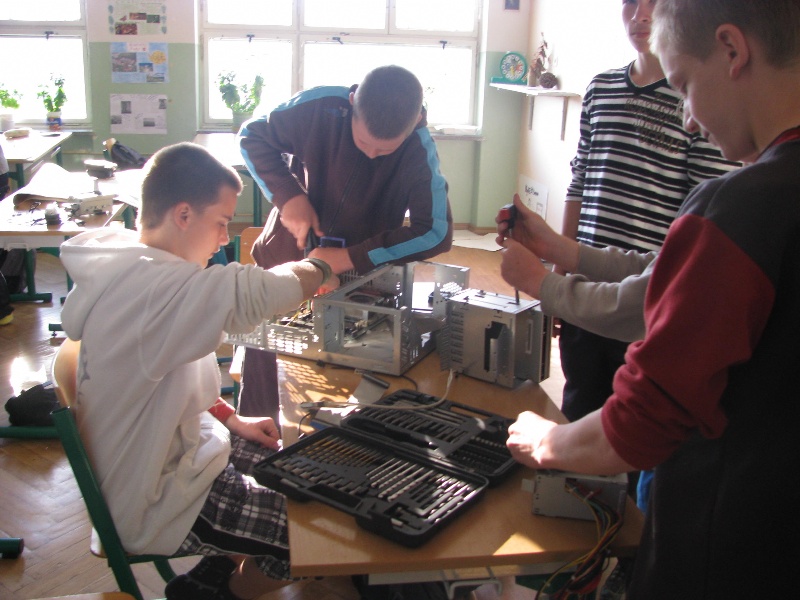 Sedmáci si připravili referáty o recyklaci elektrospotřebičů, někteří je rozebírali.