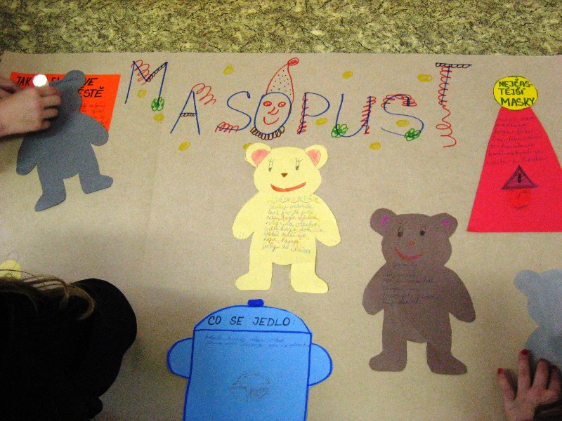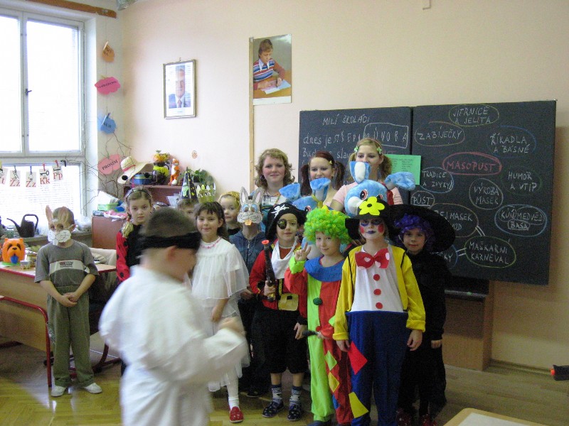 Dne 13. 2. 2008 se na naší škole již potřetí konal "Masopustní karneval". Před samotnou přehlídkou se žáci seznámili s masopustními zvyky a tradicemi. Do akce se i letos aktivně zapojili v hojném počtu žáci všech ročníků a tentokrát se k nim přidali i maskovaní vyučující. Netradiční maskou připomínající spíše pašijové hry zaujal zejména pan učitel Ešner, žáci druhého ročníku zas představili zajímavý převlek, který byl jejich společnou prací. Nejlepší masky byly vyhodnoceny porotou z řad učitelů a jejich tvůrci si odnesli dárečky, ostatní pak hezké zážitky z příjemného a uvolněného masopustního dopoledne.