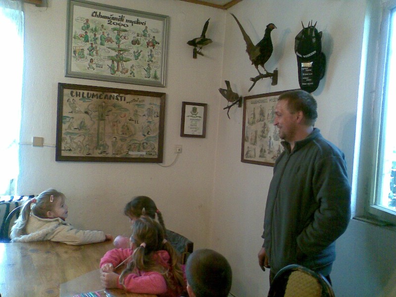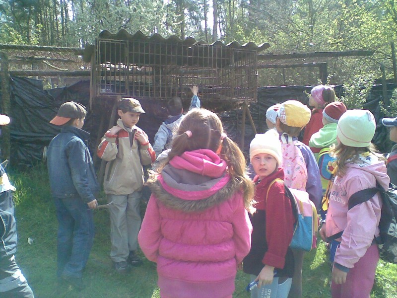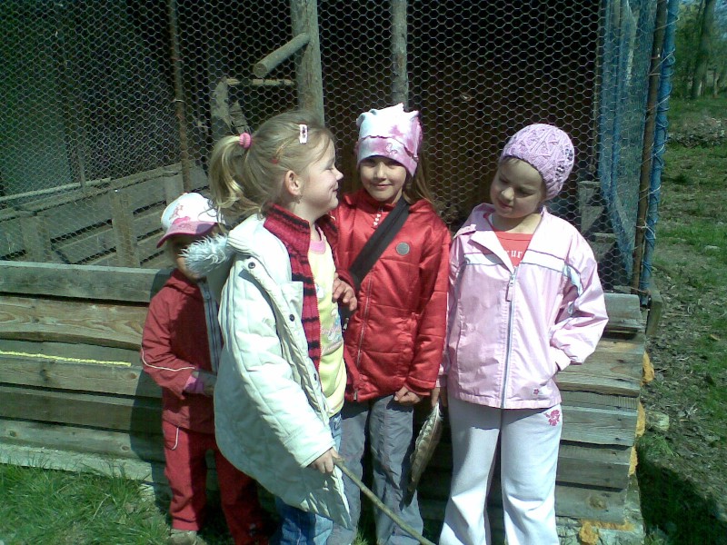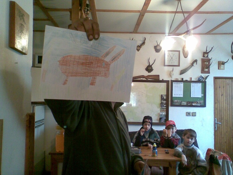 Po přivítání dostaly děti limonádu a papíry s pastelkami, aby namalovaly zvířátka, která žijí v lese. Všichni se snažili a odměnit nejlepší práce nebylo vůbec snadné. Pak se malí návštěvníci rozdělili do dvou skupin, aby si mohli lépe prohlédnout zvířátka, žijící v současné době v bažantnici. Co jsme viděli? Perličky, ježka, který krade slepičkám vajíčka, divočáka, lišáka, krůty a krocany, bažanty a slepičky, králíky, ale i vycpané dravce, veverku a kůži z jezevce. Vše bylo doprovázeno poutavým vyprávěním pana Veita.