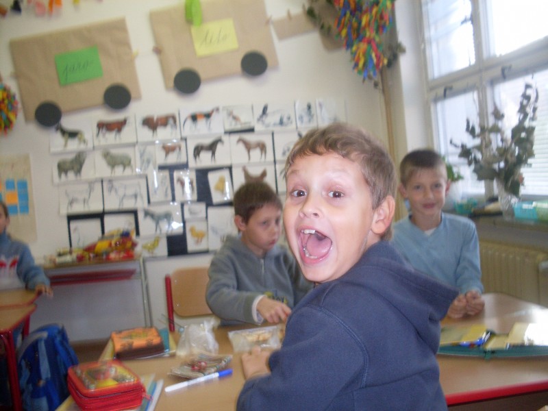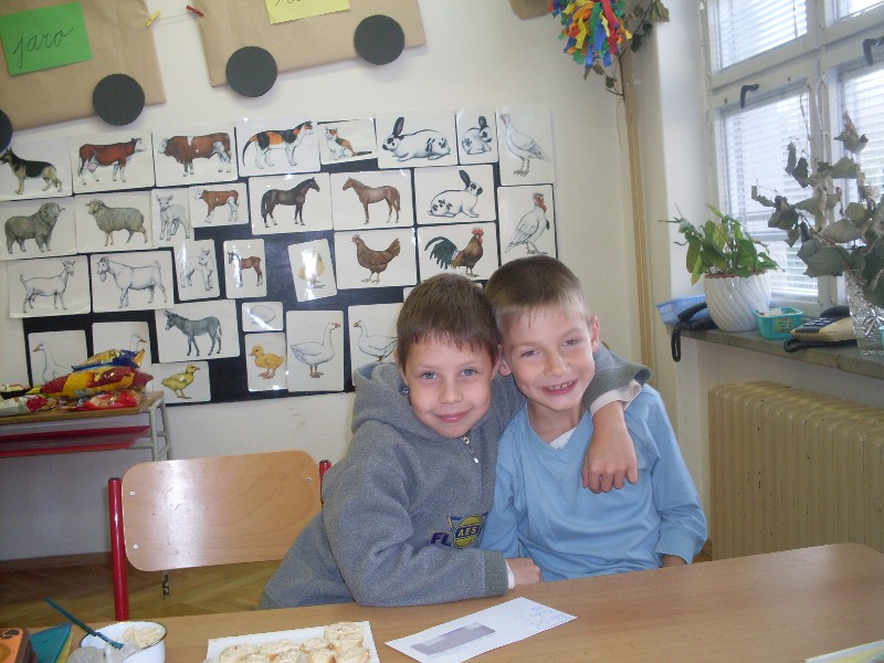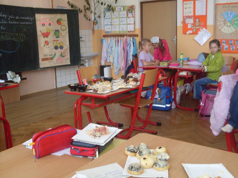 Třetí školní týden druháci věnovali oslavám. Naučili se datum svého narození, zjistili, kdy slaví svátek. Našly se ale děti, které mají smůlu a slaví narozeniny, svátek, nebo dokonce obojí o prázdninách. Jsou tak ochuzeny o slavnostní atmosféru ve třídě, kdy děti svým spolužákům zpívají vybranou písničku a rozdávají se bonbony. Proto se kluci a holky ze druhé třídy rozhodly, že společně oslaví všechny svátky a narozeniny. Původně se plánovala decentní oslava na poslední hodinu, ale nakonec se slavilo celý den. Díky některým maminkám (paní Režová, paní Skálová), které upekly nádherné dorty, nadělaly chlebíčky nebo připravily pomazánky na jednohubky, ale i všem ostatním, které nakoupily oplatky, brambůrky, tyčinky a zákusky, byla naše oslava opravdovská. Nemyslete si, že jsme jen slavili. Počítali jsme, jaký dort je dražší, psali jsme, co se do něho dává, ale přece jen nejvíce jsme se těšili na krájení dortů. A protože jsme měli dorty dva, na každého se dostalo. Prožili jsme prima den, a to díky vám, maminky. Ještě jednou moc děkujeme.