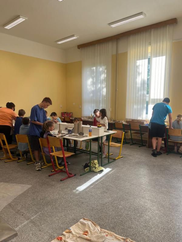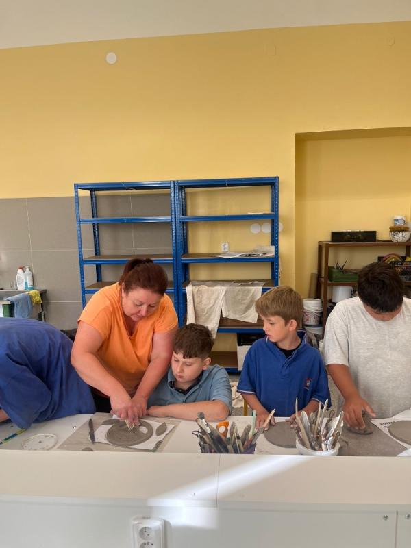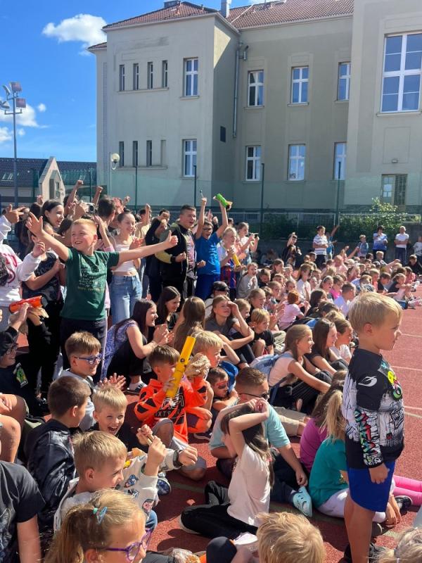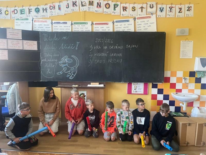 Ve středu 3. září se naše škola proměnila v jedno velké kreativní hnízdo. Poprvé jsme zorganizovali školní akci, jejímž cílem bylo náhodně propojit žáky od 2. do 8. ročníku napříč třídami a dát jim prostor ke společné tvorbě. Žáci byli rozlosováni do 11 smíšených skupin, kde se potkaly mladší i starší děti. Každá skupina měla svého garanta z řad pedagogických pracovníků, kteří je provázeli celým tvůrčím procesem. Pod jejich vedením vznikala pestrá paleta uměleckých děl. Celá škola dýchala kreativitou a spoluprací. Každý kout nesl otisk společné práce a radosti z tvoření. Během tří vyučovacích hodin se škola proměnila např. v ateliér, divadlo i koncertní sál. Během čtvrté hodiny jsme se všichni sešli na školním hřišti, kde proběhla prezentace skupin. Atmosféra byla přátelská a plná obdivu k práci ostatních. Na hřiště dorazili také žáci 1. a 9. ročníků, kteří měli svůj vlastní program v rámci projektu Kamarád. Jejich přítomnost doplnila myšlenku propojení napříč školou a společného zahájení školního roku. K vidění bylo taneční vystoupení plné energie, scénka na téma blížících se voleb, ukázky zhudebněných básní i přehlídka originálních účesů a pomalovaných tváří. Na závěr nabídlo hudební vystoupení směs zpěvu, hry na hudební nástroje i rytmická cvičení – nechyběla hra na ozvěnu ani originální využití papírového sáčku jako netradičního perkusního prvku. Zatímco některé skupiny vystupovaly na školním hřišti, další prezentovaly svá díla přímo v prostorách školy. Ve školní dílně vznikla keramická díla – žáci tvořili s velkým zaujetím strom. Chodby se proměnily v galerii plnou barev. Hlavní chodbu rozzářila podzimní výzdoba na oknech a obrázky sportovců. V prvním patře byly k vidění ukázky prací z kreativní dílny, kdy žáci tvořili s přírodninami, látkami či papírem. Zkrátka každá skupina dostala prostor zazářit. Společná tvorba, nové přátelství a možnost vyjádřit se jinak než jen v lavici – to vše přispělo k výjimečné atmosféře, kterou si budeme jistě pamatovat.