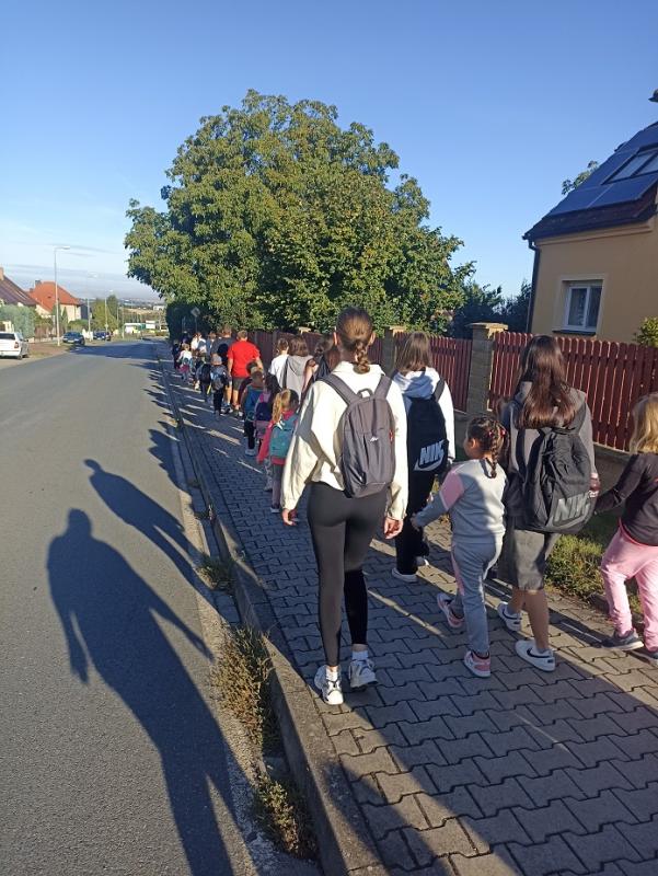 První společná akce byla vycházka do okolí Chlumčan. Deváťáci se svých rolí ujali s velkou zodpovědností – celou cestu se o své malé kamarády starali, vedli je za ruce, povídali se s nimi a pomáhali jim s úkoly, které si pro ně sami připravili. Cílem bylo nejen poznat okolí školy, ale především navázat první přátelské vztahy.