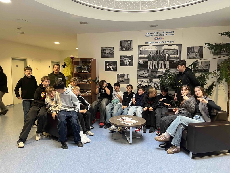 14. října 2025 se žáci sedmého ročníku vydali do Plzně. Navštívili jsme objekt Zdravotnické záchranné služby Plzeňského kraje. Nejdříve nás náš průvodce seznámil s obecnými informacemi. Pak následovala prohlídka dispečinku. Poté jsme se odebrali do vozového parku, kde jsme si prohlédli záchranářské vozy různých typů. Každý výjezdový vůz byl vybaven defibrilátory, pomůckami k zajištění dýchacích cest, samorozpínacími vaky, mobilními ventilátory a dalšími pomůckami k záchraně životů. Vše nám bylo hezky vysvětleno a naše dotazy vždy našly odpověď.
