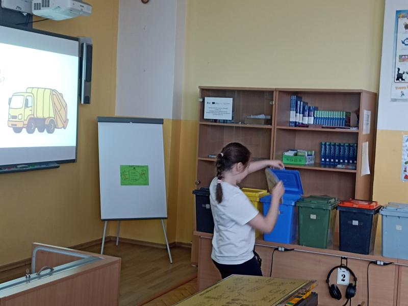 Přednášky byly přizpůsobeny věku dětí, žáci si připomněli barvy kontejnerů na tříděný odpad, zhlédli krátká videa, dozvěděli se, co se s odpadem děje, když opustí naše domácnosti. Žáci si vyzkoušeli roztřídit připravené vzorky odpadů do miniaturních popelnic.